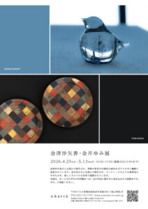 4月25日から5月13日まで八海山雪室2F okatteにて「金津沙矢香・金井ゆみ展」を開催いたします。